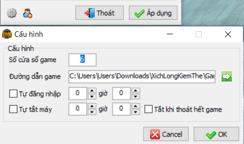- Nhấn vào phần bánh răng cưa cài đặt. Nhấn vào mũi tên màu xanh lá cây để chọn phân vùng đến Game.exe dùng để đăng nhập game ban đầu. > nhấn Áp dụng