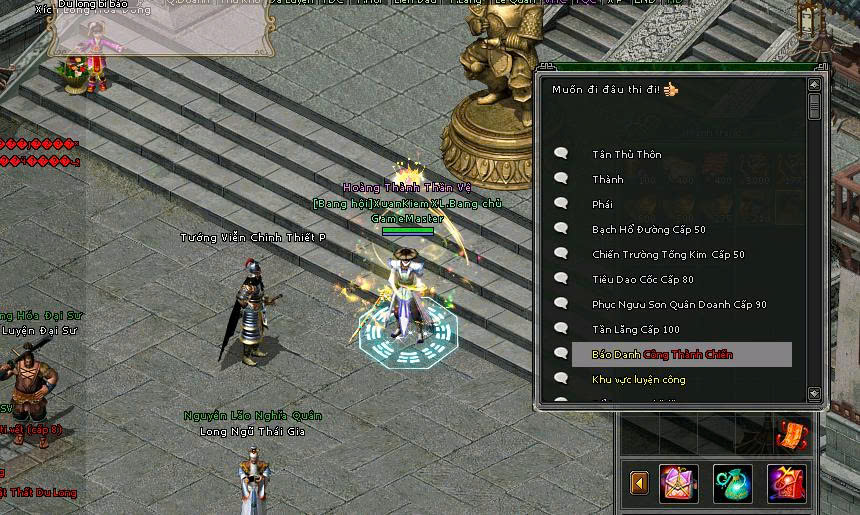 | Công Thành Chiến | ![]() Thứ 3 hàng tuần Người chơi sử dụng Vô Hạn Truyền Tống Phù truyền tống đến bản đồ Công Thành Chiến Bang chủ Bang Hội Báo Danh ( yêu cầu là 1 trong 4 bang hội top boss tuần ) Báo Danh từ : 20:00 đến 20:35 Bắt đầu vòng tuyên chiến : 20:35 đến 20:50 Thưởng Bang Hạng 1 : danh hiệu Bang Hội, 1 huyền tinh cấp 9, 200 tiền du long, 200 vạn đồng khóa, 200 vạn mốc nạp Thưởng Bang Hạng 2 : 2 huyền tinh cấp 8, 150 tiền du long, 150 vạn đồng khóa, 150 vạn mốc nạp Thưởng Bang Hạng 3 : 1 huyền tinh cấp 8, 100 tiền du long, 100 vạn đồng khóa, 100 vạn mốc nạp Thưởng Bang Hạng 4 : 1 huyền tinh cấp 8, 50 tiền du long, 50 vạn đồng khóa, 50 vạn mốc nạp Thời gian nhận thưởng từ 20:00 đến 22:00 , hết thời gian trên bản đồ Công Thành Chiến sẽ tự đóng không vào được nữa Quy Tắc : Tiêu Diệt người chơi được 2 điểm Bảo Vệ Ngai vàng được 1 điểm Cướp Ngai Vàng được 100 điểm Đánh ngã 1 trong 4 long trụ được 20 điểm • Đánh Long Trụ được tăng thêm các chỉ số thuộc tính cho cả bang, long trụ bị chiến lại sẽ mất chỉ số thuộc tính cộng thêm : tăng dame, tăng khác, tăng giảm hiệu ứng, tăng chí mạng v.vv |